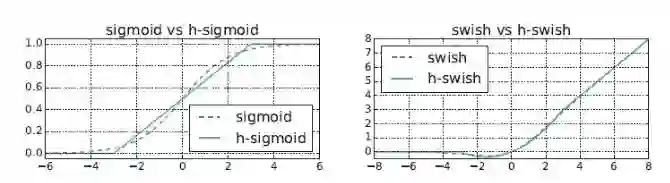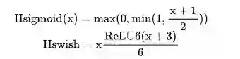 Sigmoid系列: Sigmoid、swish、h-sigmoid、h-swish;sigmoid对低性能的硬件来说非常不友好,因为涉及到大量的exp指数运算和除法运算,于是有研究人员针对此专门设计了近似的硬件友好的函数h-sigmoid和h-swish函数,这里的h指的就是hardware的意思:
