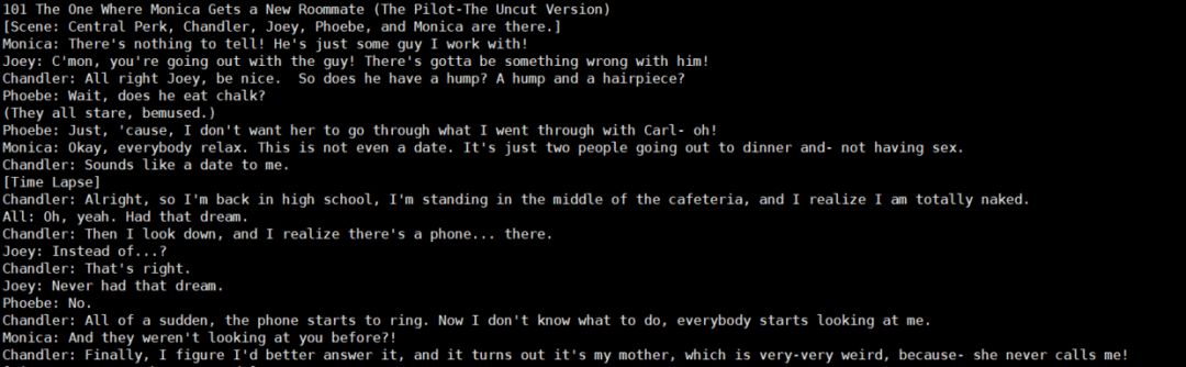 用到的训练数据是我从网上爬下来的老友记十季的剧本: