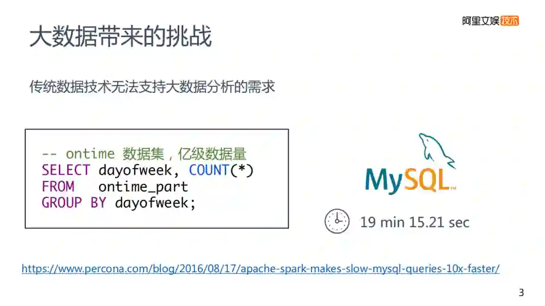 在实际应用中的数据处理速度,假定是亿级数据量,如果使用传统的mysql进行分析需要耗时19分钟。