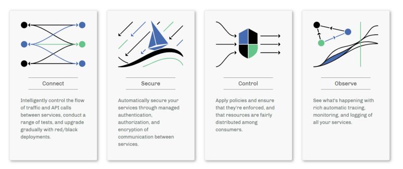 Istio 提供了对整个服务网格的行为洞察和操作控制,提供了完成的解决方案以满足微服务应用程序的各种需求。CoreDNS 是一种快速灵活的工具,可用于发现服务。Envoy和 Linkerd 都支持服务网络体系结构。