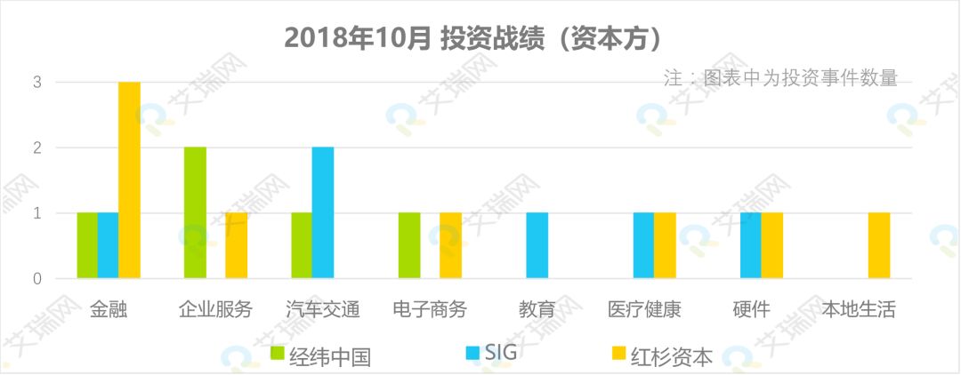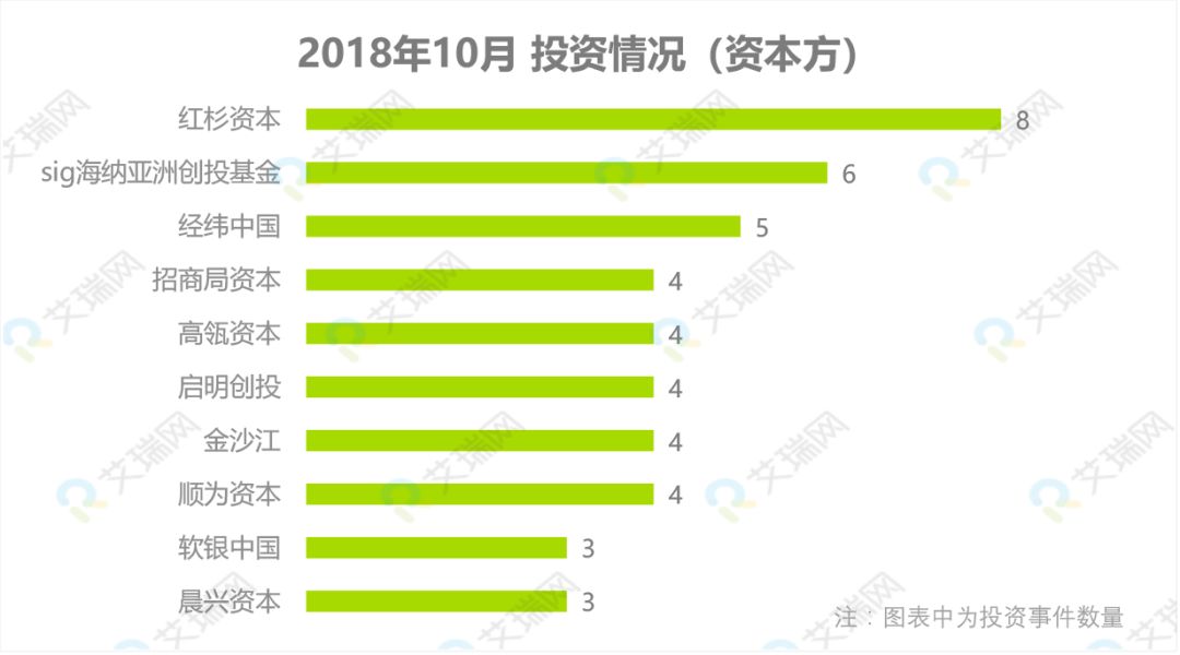 艾瑞网整理2018年10月投资行业事件发现,本月资本方投资行业事件数前三名分别为红杉资本、SIG海纳亚洲基金及经纬中国。三家投资机构更侧重于发展相对较为成熟企业,参加多为A轮-C轮投资。