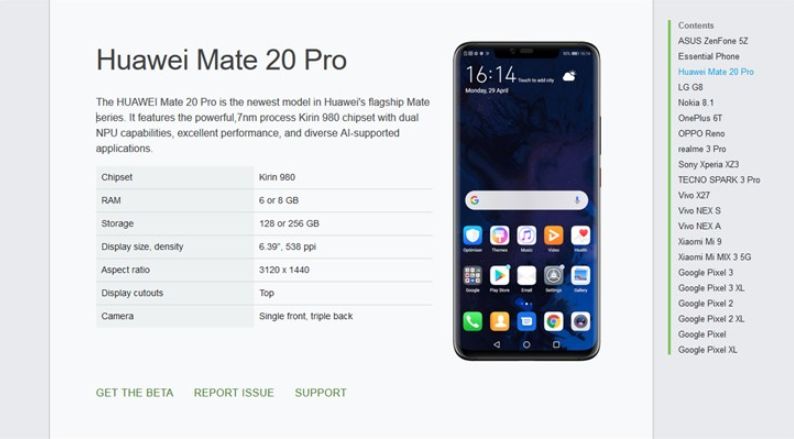 就在刚刚,华为 Mate 20 Pro 重新出现在了安卓 Q Beta 版本的名单内。