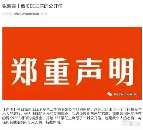 刚刚!全球最大学术组织IEEE正式道歉;并宣布立即全部解除华为禁令!!!恢复华为的所有评审,审稿资格。。