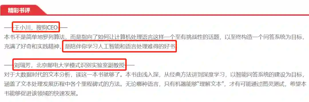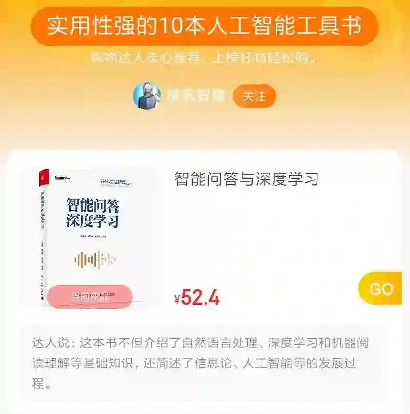 与视频课配套的《智能问答与深度学习》这本书,已荣登京东实用性强的10本人工智能工具书。