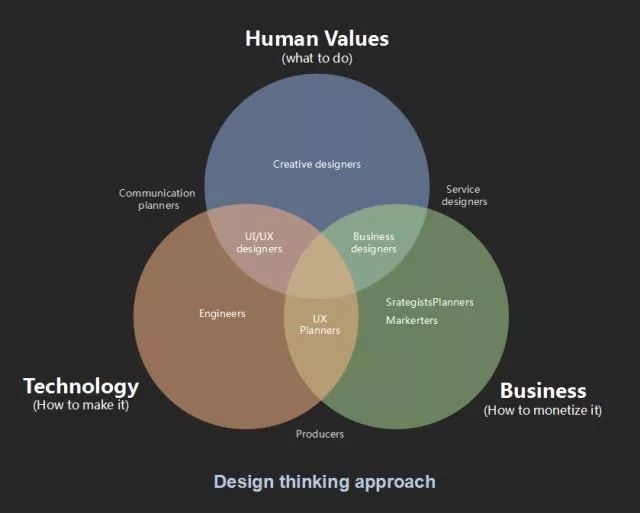 最后再次回到Design thinking模型:商业、用户关注、技术三者有效结合,才能带来真正的创新机会,而参与其中的市场人员、产品人员、创意设计人员、体验设计、工程师、交互设计在其中扮演不同的角色,又紧密连接。只有这样做到充分的连接和结合,我们才能输出真正好的创意设计内容。