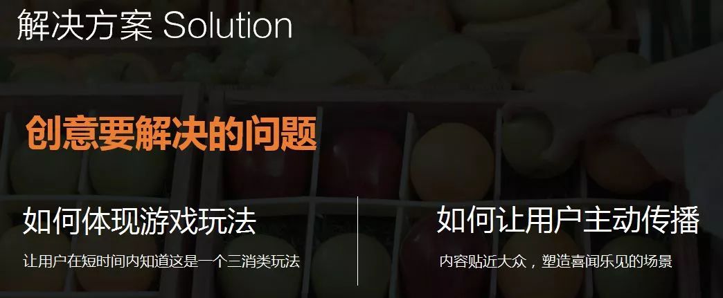 《天天爱消除》作为腾讯移动游戏平台的首款手游,定位为休闲游戏,面向大众用户,玩法简单、上手容易、画面风格可爱,创意团队的核心任务是在预算资源有限的条件下,把游戏核心玩法“三消”概念放大并强化,让足够多的用户认同,并且足够沉浸地去理解内容。实施过程中,我们不断追问品牌和产品团队上述一系列问题。由于当时游戏广告不允许在电视媒体投放,所以我们打算通过微博、SNS社交媒体进行投放;基于网民审美标准非常高的特点,团队只能靠想出一个足够好的点子,让社区用户自主来转发传播。当时我们把精力重点放在了如何拍好一个视频上。