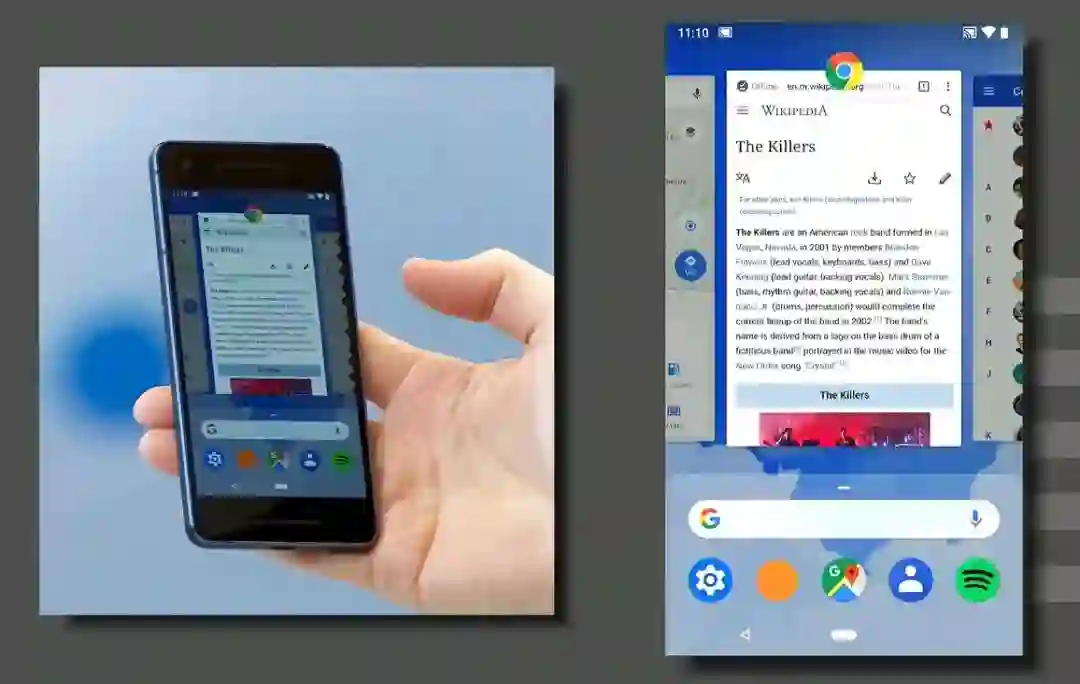 还有一个新手势叫做 Quick Scrub,可以通过手势快速在最近打开的应用程序之间进行切换,只要按住“小胶囊”向左或向右滑动即可自动切换,这个与 iPhone X 按住“小滑块”或“小横条”的操作完全一样,谷歌也认为这是快速切换应用的最佳解决方案。