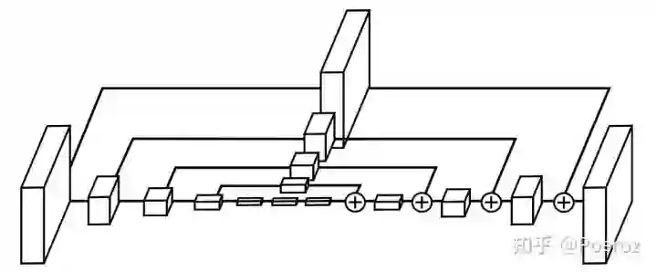 每个Hourglass module的结构如下图所示,其中每个box都是一个残差结构。可以看到在top-down阶段,对于两个相邻分辨率的feature map,我们通过upsampling(这里用的是nearest neighbor upsampling)对较低分辨率的feature map进行上采样,然后通过skip connection将bottom-up阶段较高分辨率的feature map拿过来,此时再通过element-wise addition将这两部分特征进行合并。通过这种方式,在top-down阶段将不同分辨率下的特征逐步进行了融合。
