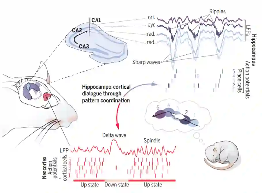 本文研究重点在于NREM睡眠阶段。进入该阶段后,海马体和大脑皮层活动模式会维持协调,这种协调可以维持记忆的「巩固」。
