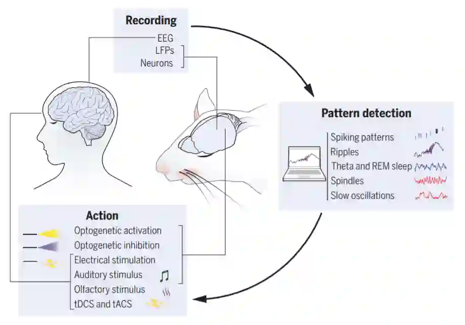 在研究方法上,研究人员通过闭环实验对大脑信号进行实时处理,检测睡眠模式,同时使用能够实时影响神经网络的介入方法,自动触发给定模式的检测,以检验某个操作是「促进」还是「损害」记忆巩固。