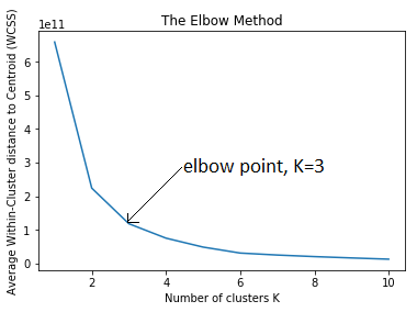 因为增加集群的数量总是会减少到数据点的距离,所以增加K总是会减少这个度量,当K等于数据点的数量时达到0的极限。因此,这个指标不能作为唯一的目标。相反,将与质心的平均距离作为K的函数绘制出来,并使用“弯头点”(急剧下降的速度)来粗略地确定K。