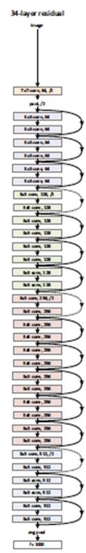 36 层的 ResNet 模型示例