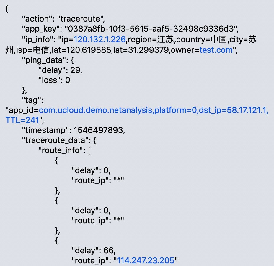 终端Traceroute网络质量原始数据,部分显示