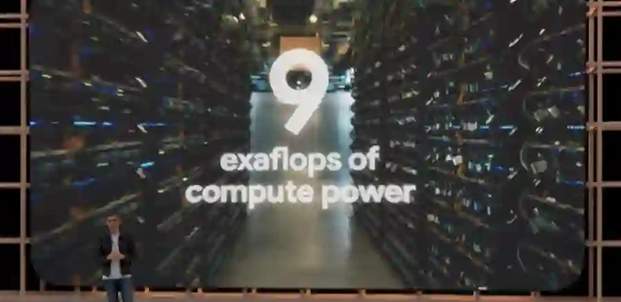 其中8个 TPUv4 pods位于谷歌俄克拉荷马州梅斯县的数据中心,能够产生9 exaflops的原生人工智能计算速度。