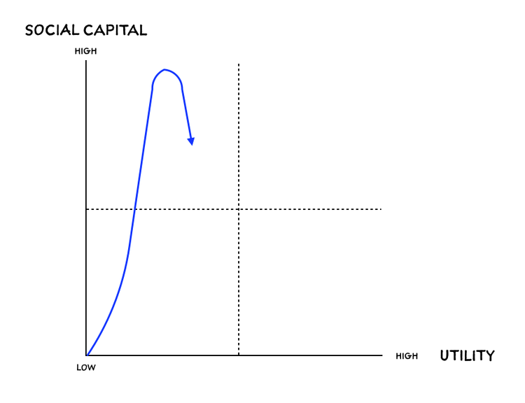 通过我们之前提到的效用-社交资本双轴模型,我们可以尝试理解,随着时间推移,社交网络们的发展路径是怎样的。