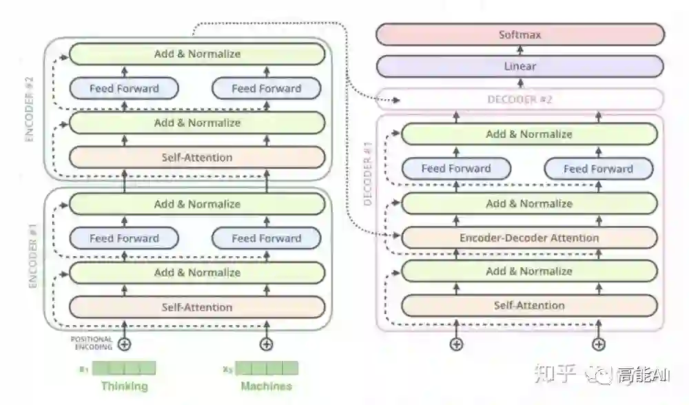 Transformer其实这就是一个Seq2Seq模型,左边一个encoder把输入读进去,右边一个decoder得到输出: