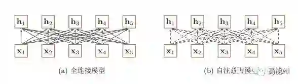 由上图可以看出,全连接网络虽然是一种非常直接的建模远距离依赖的模型, 但是无法处理变长的输入序列。不同的输入长度,其连接权重的大小也是不同的。