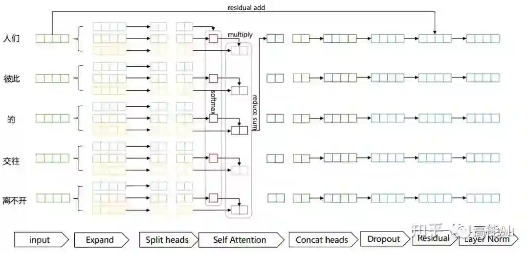Expand:实际上是经过线性变换,生成Q、K、V三个向量;