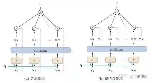 与普通的Attention机制(上图左)相比,Attention机制有哪些变种呢?