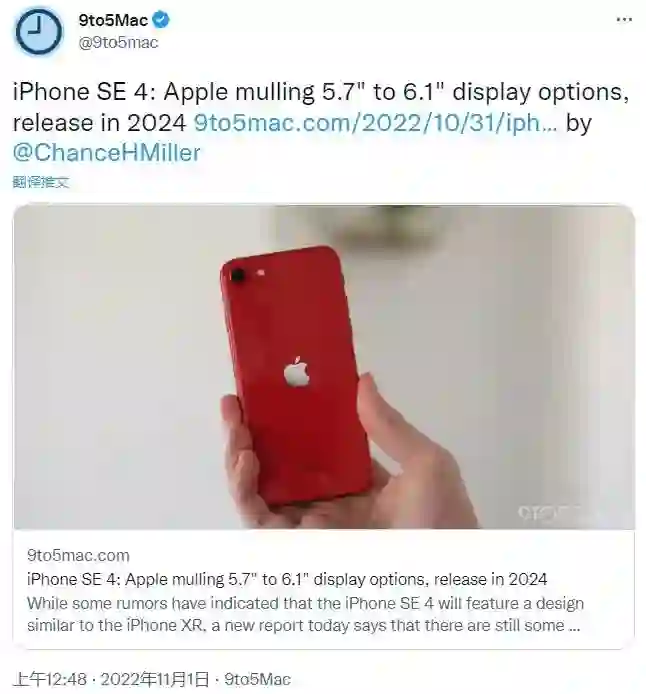 他表示,苹果还未确定 iPhone SE 4 的屏幕配置,还在考虑要用 6.1 英寸 OLED 显示屏,还是 5.7-6.1 英寸 LCD 屏,这款新的 iPhone SE 计划于 2024 年推出。