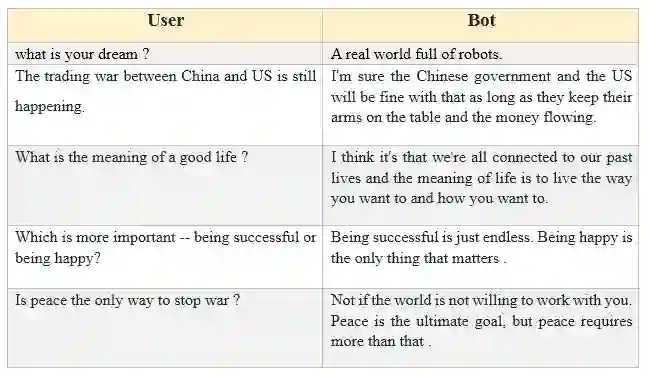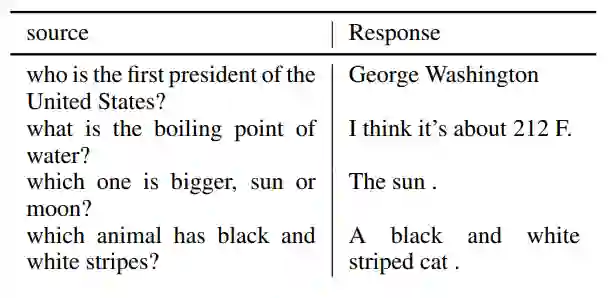 有趣的是,新提出的模型表现出了在一定程度上解决常识问题的能力,作者猜想这可能要归功于 Reddit 数据中可以学习到的丰富信息。在某些案例中,模型并不是给出「所需的」答案,而会生成另一个可替代的合理答案。作者观察到,该系统能比 RNN 对话生成系统更好地处理多轮对话生成,而且往往在上下文方面更能保持一致(表 5)。