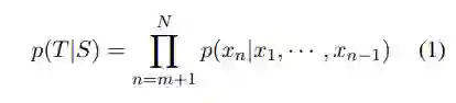 作者首先将一个对话会话中所有对话回合连接成一个长文本 x_1, · · · , x_N(N 为序列长度),并以「文本结束 token」结束。可将源句子(对话历史)记为 S = x_1, · · · , x_m,将目标句子(基本真值响应)记为 T = x_{m+1}, · · · , x_N,则 P(T|S) 的条件分布可以写为一系列条件概率的积: