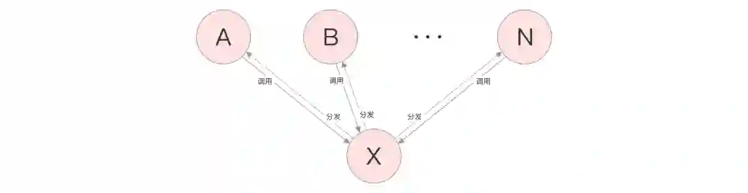 public void sendMessage() { // A调用X eventManager.dispatch(ACTION_SOMETHING); }}