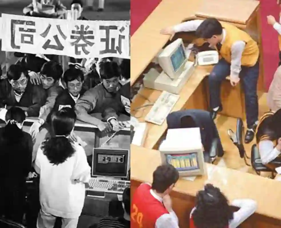 左为1990年上海证券所开业市民排队买股票,右为科创板2019年成立 图源:网络