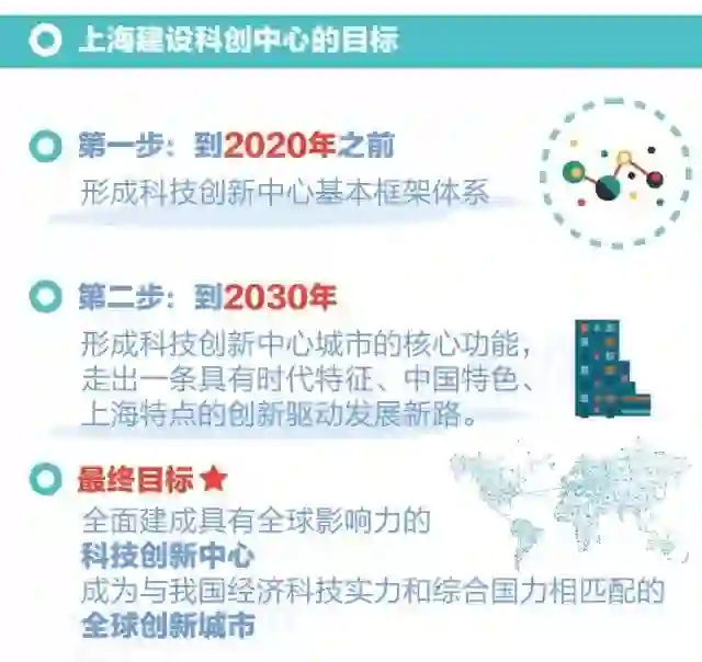 2015年,上海提出要建成具有全球影响力的科技创新中心。在“科创22条”中提出了“两步走”规划:2020年前形成科创中心基本框架体系,到2030年形成科创中心城市的核心功能,并在行政审批、企业税收、科创企业上市、人才落户等方面提出了明确措施。