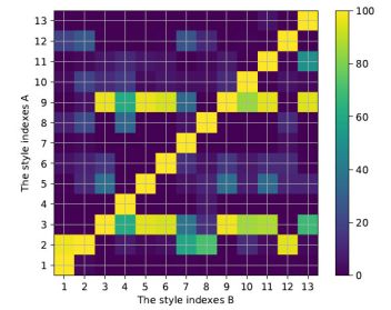 图2. 当风格B发生时风格A的条件概率图