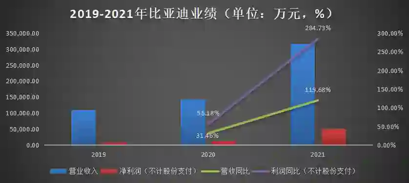 此前比亚迪半导体就因为股权激励影响了净利润。仔细看比亚迪半导体的营收和利润就会发现,2020年比亚迪半导体出现了增收不增利的情况,背后的原因就是其在2020年进行了股权激励,产生了7429.77万元的股份支付费用,如不考虑股份支付,2020年比亚迪半导体归母净利润为1.33亿元,较上一年增长56.18%。