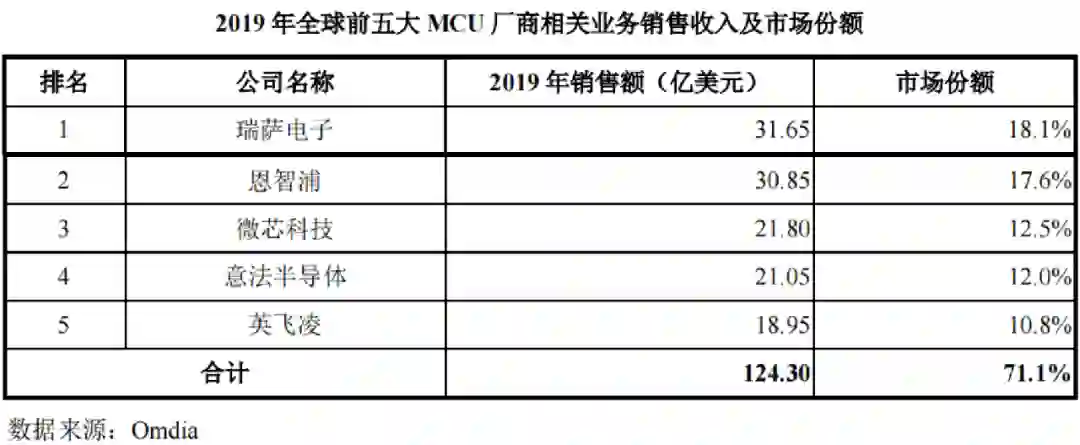 MCU(微控制单元)则是车上卡脖子更严重的地方。Omdia数据显示,2019年全球MCU市场规模为175亿美元,仅中国MCU市场规模就达53亿美元,占比超3成。然而中高端MCU市场中,前五大MCU厂商就占据了70%以上的份额,前十大MCU厂商无一家境内企业。