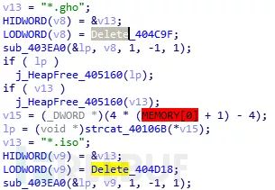 最后创建线程,在线程函数中,XiaoBa会遍历所有文件,查找扩展名为.exe,.com,.scr,.pif,.html,.htm,.gho,.iso的文件, 针对不同的扩展名执行不同的操作.exe,.com,.scr,.pif