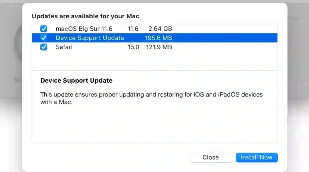 苹果通过软件更新为Mac提供了一个新的设备支持更新,苹果公司表示,它解决了iPhone和iPad的恢复和更新问题。 苹果的软件更新,在Mac的系统偏好设置中,现在除了熟悉的macOS Big Sur更新之外,还显示了一个新的选项。这个名为“设备支持更新”(Device Support Update)的软件似乎是针对通过Mac更新设备问题的额外修复。软件更新显示:“这一更新确保了苹果iOS和iPadOS设备的正确更新和恢复。” 通常,这些功能是定期软件更新的一部分,而不是单独发布。苹果指出,此次更新需要195.6MB的磁盘空间。虽然新增功能的总体描述很清楚,但目前还没有具体的细节说明哪些问题已经修复,或者这是否是针对iPhone 13和iPad mini等新设备的特定修复,因为目前macOS Monterey还没有推出。
