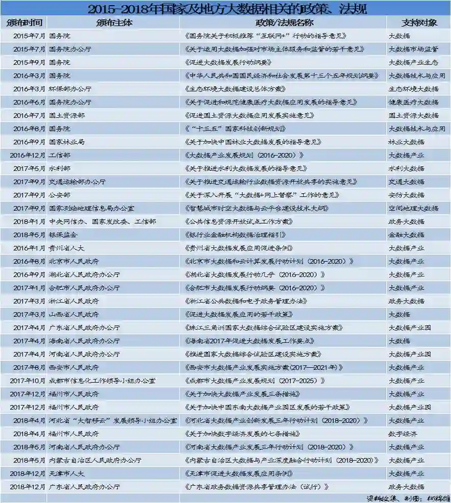 自2014年开始,大数据连续六年被写入政府工作报告。此后,国家相关部门和一些地方政府纷纷出台相关政策法规,发力大数据产业。