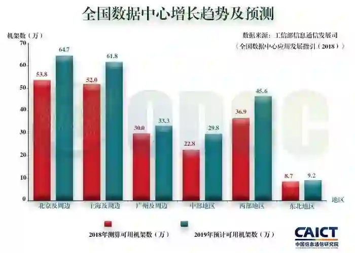 从全国布局情况来看,北京、上海、广州、深圳等一线城市数据中心规模增速放缓,其周边地区数据中心规模快速增长,网络质量、建设等级及运维水平进一步提升,逐步承接一线城市应用需求。西部地区数据中心网络、运维质量不断完善,冷存储业务、离线计算业务开始上线,数据中心利用率正在不断提高。