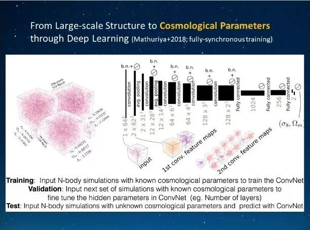 图7:宇宙学的神经网络可以用星系的三维分布预测宇宙学参数