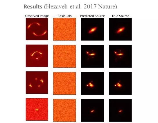 答:这个问题特别好,我相信是不唯一的,比如多几个子结构可能能产生差不多的爱因斯坦环,或者取决于背景和前景的星系。但是从现在训练出来的结果来看,虽然真实分布可能有一些微小的差别,但是它能把主要的结构预测得非常好。这点其实非常神奇。