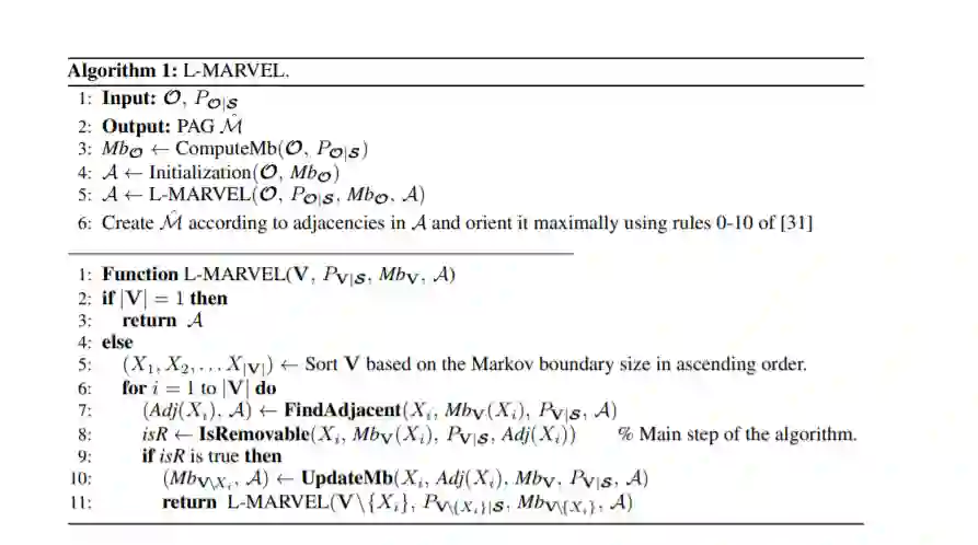 我们考虑了在存在潜在混淆变量和选择偏差的情况下,从观测数据中学习系统的因果MAG(Maximal Ancestral Graph)的问题。基于约束的方法是解决这一问题的主要方法之一,但现有方法在处理大型图时要么计算代价太高,要么缺乏完整性保证。我们提出了一种新的计算有效的递归约束方法,是健全和完整的。我们方法的关键思想是,在每次迭代中标识和删除特定类型的变量。这使我们能够高效地递归地学习结构,因为这种技术既减少了所需的条件独立(CI)测试的数量,又减少了条件集的大小。前者大大降低了计算复杂度,而后者产生了更可靠的CI测试。我们提供了最坏情况下所需CI测试数量的上限。据我们所知,这是文献中最紧的上界。我们进一步提供了任何基于约束的方法所需的CI测试数量的下界。在最坏的情况下,我们所提出的方法的上界和下界最多相差一个等于变量数的因子。我们也通过模拟与真实实验对提出的方法与当前最优算法进行了比较。