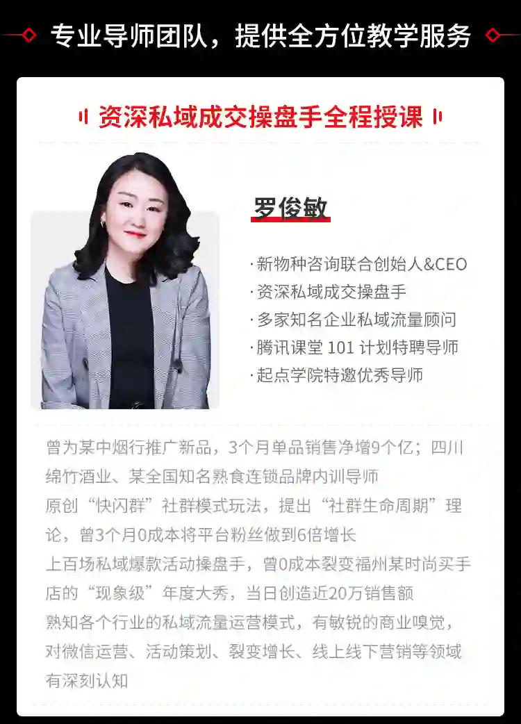 1、 资深私域成交操盘手全程授课,毫无保留分享私域运营经验