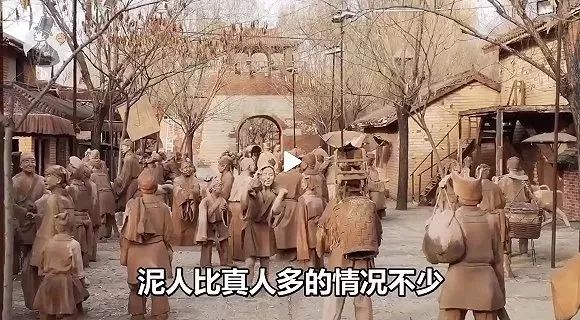 他所去的地方,通常具有和现代社会格格不入的边缘气质。例如秦皇岛有两艘“寻仙号”游轮,通体绘上了鲜艳的海洋图案,船中有水池,旁边还有打扮成虾兵蟹将的人,加上附赠的鲜艳表演,整体相当荒诞不经。另一座河北城市唐山则靠泥人出了名,一处叫麻龙湾的景点里泥人比真人还多,且其中一大部分是木头架子糊层泥套上衣服的伪泥人,阴森可怖却美其名曰“清明上河图”。这个“清明上河图”里还包括一批悠闲散养的家禽家畜。