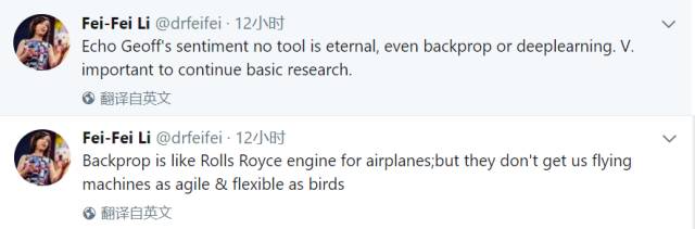 Hinton的「摈弃一切,从头再来」观点,在推特上引起了热烈反响,Pedro Domingos、李飞飞等多人纷纷转发。李飞飞评论道:「赞同 Hinton 关于没有工具是永恒的观点,甚至反向传播或者深度学习也不例外。因此,基础研究的继续异常重要。」Gary Marcus 自夸说:「深度学习并不完美,我们应该有新的开始。我二十年前就讲过这句话。」
