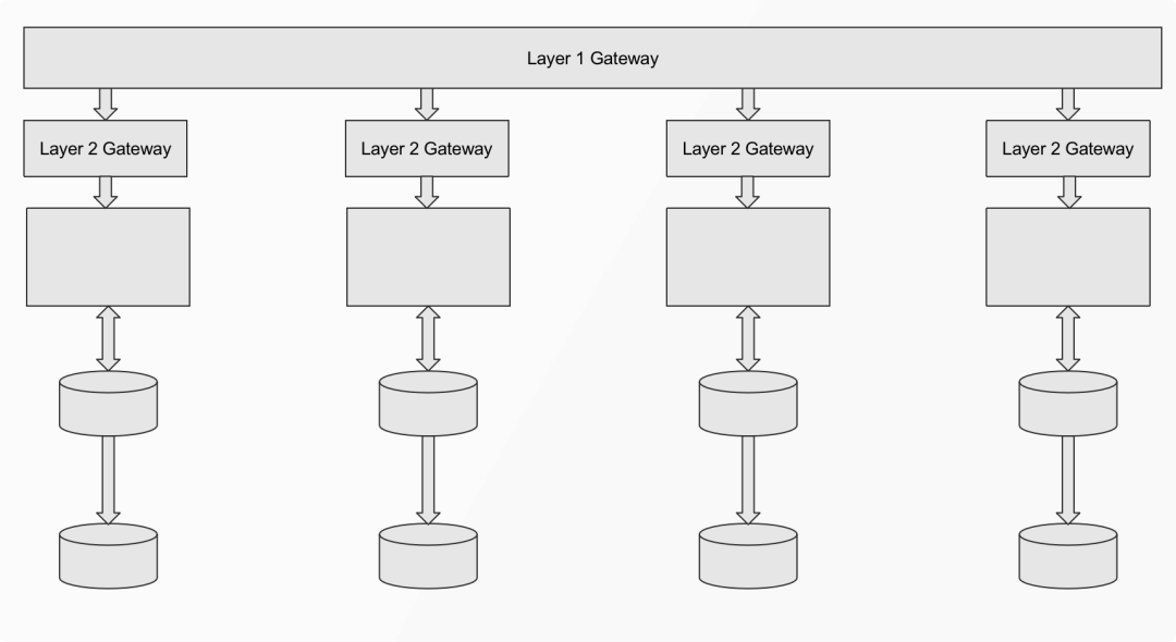 如上图就是「智能路由」模式下的架构图。网关主要分为两层,第一层负责路由请求,根据条件来判断请求应到达哪个数据中心;第二层网关则是进行流量转发。所以网关在这个模式中主要解决的问题就是给每个请求分配好「归宿」,然后进行后续的流量转发与业务处理。
