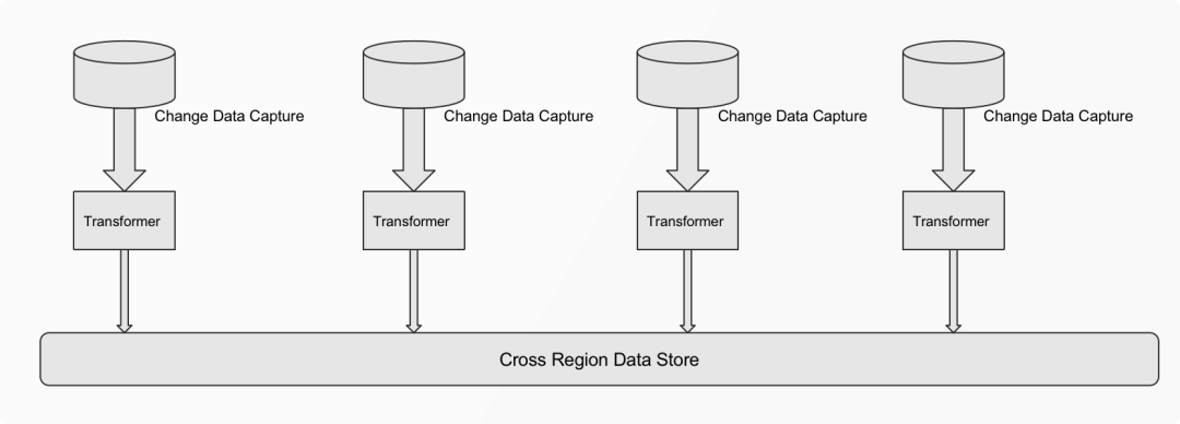 在这种情况下,我们进行了如上所示的数据存储架构,可以保证全球化的数据同步。比如:一位用户在中国注册账号,我们通过 CDC(Change Data Capture) 把相关数据转化成 Kafka message,通过专门的 listener 进行本地消息的接收,然后做进一步的转化。如:去除用户名、Email 等个人信息,这些信息都是不能跨境存储的。
