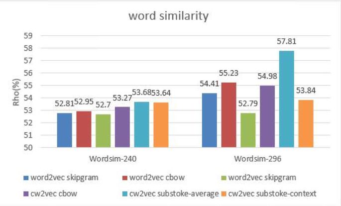 下图和表中的substoke-average代表使用的词向量是笔画信息的n-gram特征取平均,substoke-context代表使用的词向量是context word embedding。