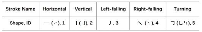 为了方便,论文提及把笔画信息数字化,用数字代表每一种笔画信息,如下图。