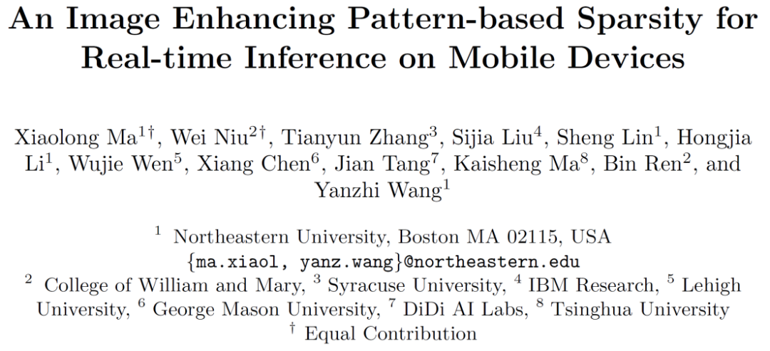 由美国东北大学王言治教授研究团队与美国威廉玛丽学院任彬教授研究团队共同提出,IBM、清华等共同研究的模式化稀疏度感知训练框架,不仅能够同时实现卷积核稀疏模式的全自动提取、模式化稀疏度的自动选择与模型训练,还证明了所提取的模式化稀疏度与理论最佳模式化稀疏度相匹配,并进一步设计了能够利用模型特点实现编译器优化的移动端推理框架,实现了大规模深度神经网络在手机移动端上的实时推理。目前,这篇文章已被 ECCV 2020 会议收录,该文章同时入选 ECCV 2020 demonstration track。
