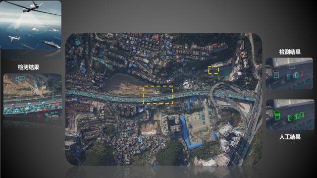 上图为一张无人机从千米高空俯拍的地面图,密集恐惧症患者就不要看了,因为图中所有密密麻麻的小绿框都是检测到的车辆,我不知道大家看到这张图片是什么感觉,我想象了一下,如果我从千米高空俯视地面,别说车辆了,大概连地面我都看不到。