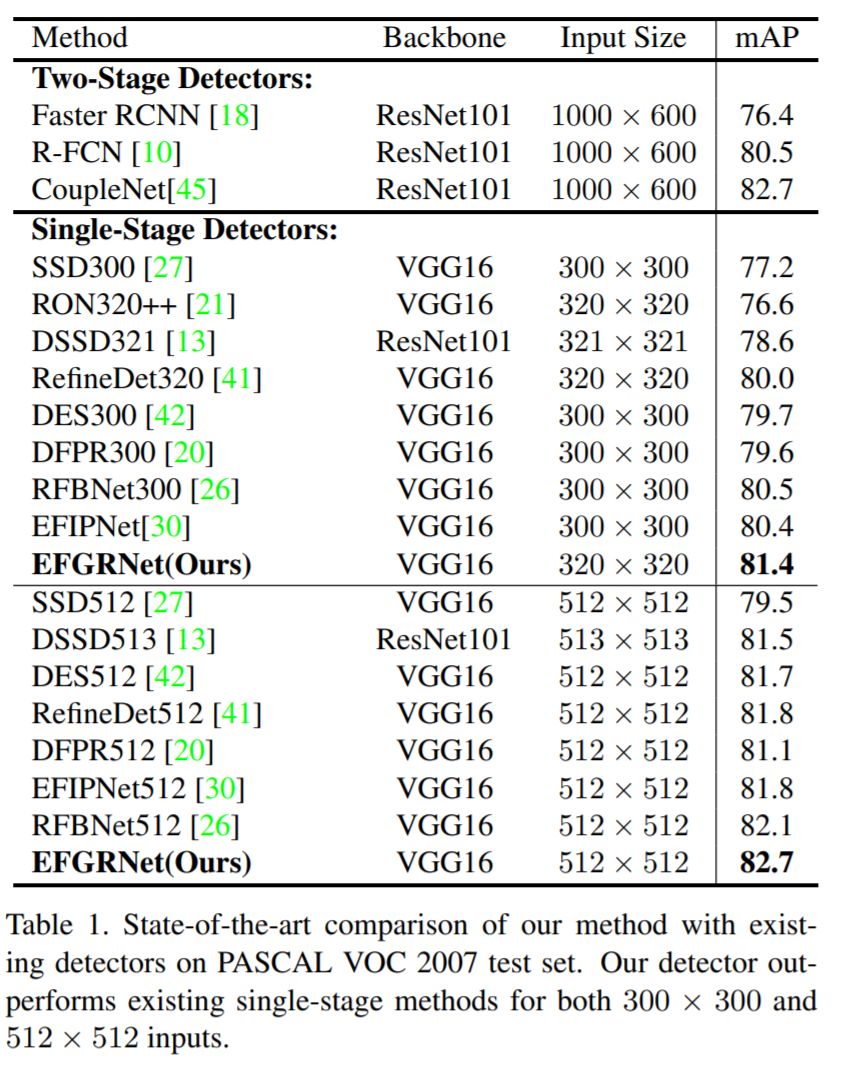 注:EFGRNet是基于SSD改进的Single-Stage检测网络,在COCO上可达46ms/39.0mAP(512x512),现已开源!