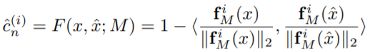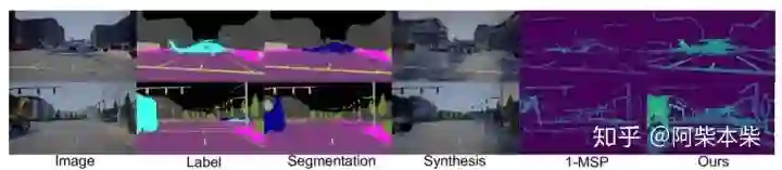与故障检测一样,首先在训练图像上训练一个cGAN生成器G,它使用分割对象标签来合成图像。给定一个语义分割模型M,我们得到其预测yˆ = M (x)和获取的合成图像xˆ = G(yˆ)。由于yˆ中只包含了给定的类别,所以xˆ也只包含了给定的类别。因此xˆ与x会差别很大。所以将x与xˆ再次输入M中时,M最后一层所提取的特征也会有很大的差别。作者用余弦距离作为指标来定义x与xˆ在M最后一层特征上的差异: